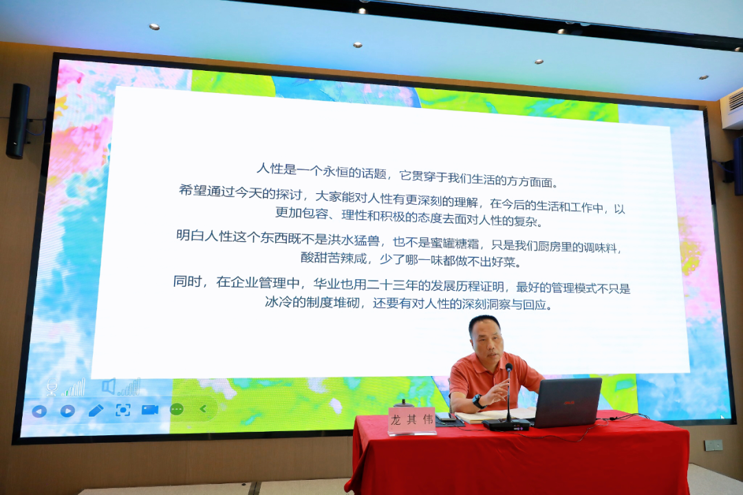 培訓(xùn)中,龍其偉總裁以“人性與企業(yè)管理”為主題,通過(guò)分享視頻和生動(dòng)事例解碼人性本質(zhì),指出人性是生物本能與社會(huì)屬性交織的復(fù)合體,既包含趨利避害的生存本能,又蘊(yùn)含向善求真的精神追求。